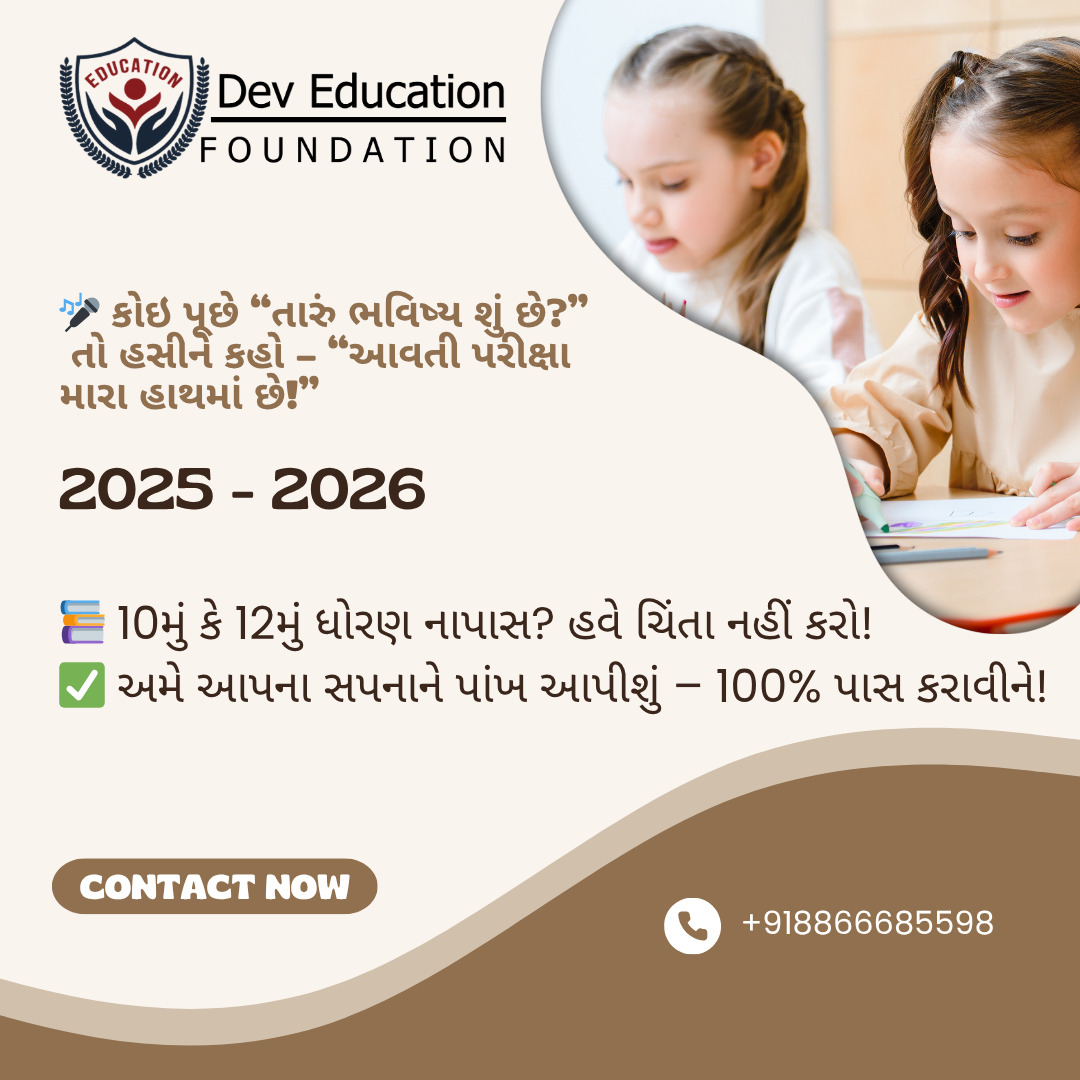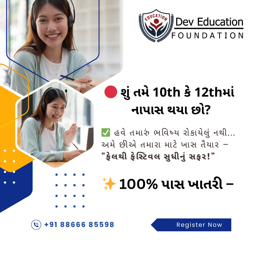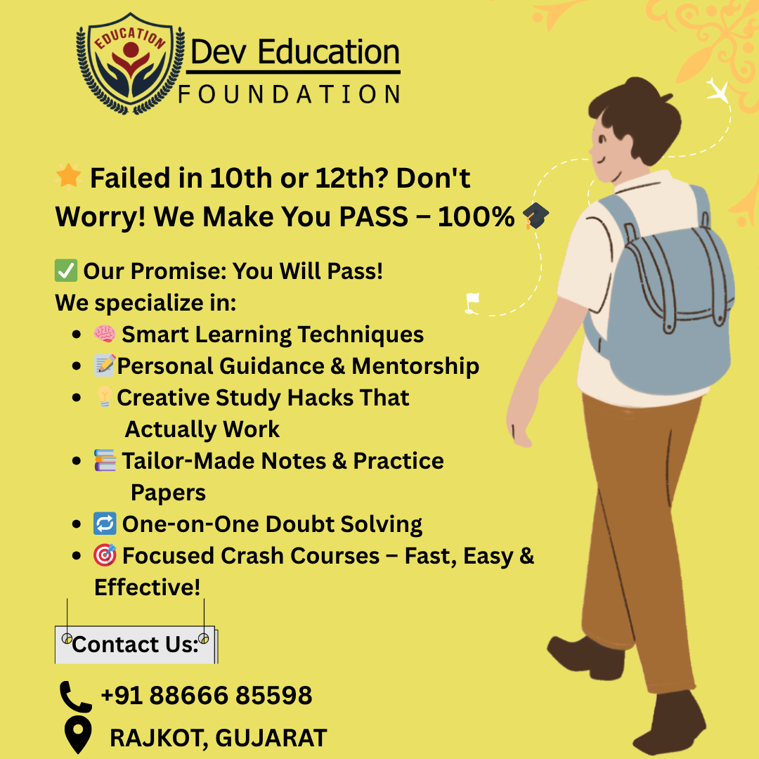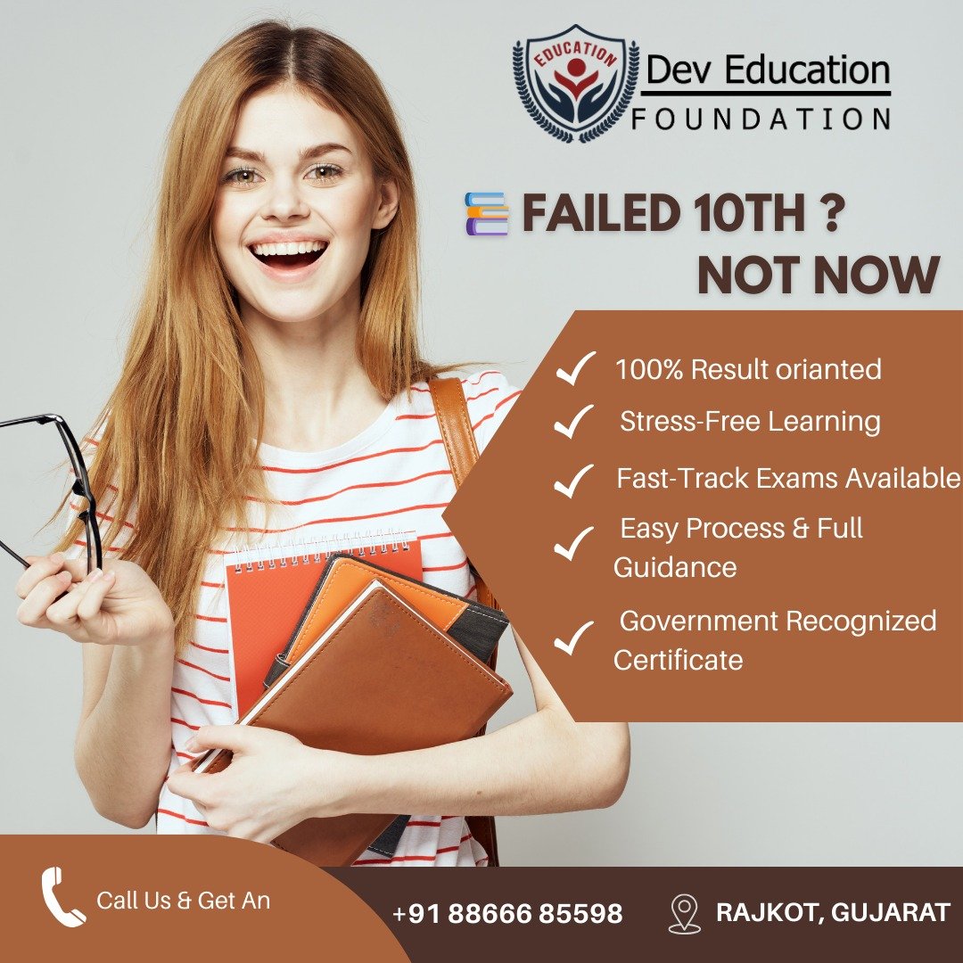 Dev Education Foundation in Rajkot, Gujarat offers a valuable opportunity for students who failed or dropped out of 10th grade to complete their schooling th..