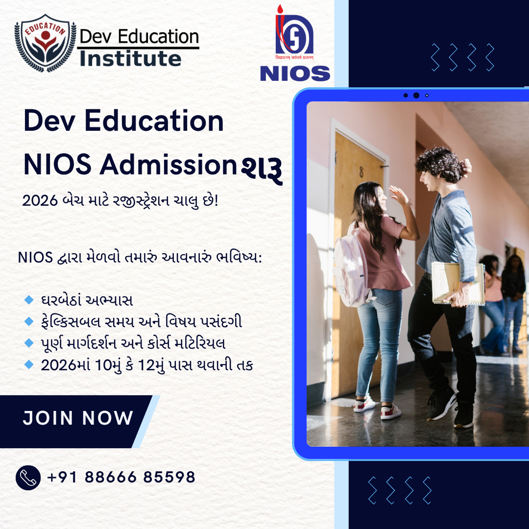 Dev Education Institute Provide October 10th nios admission in Rajkot, Gujarat, India