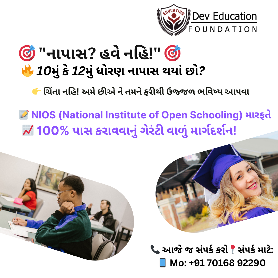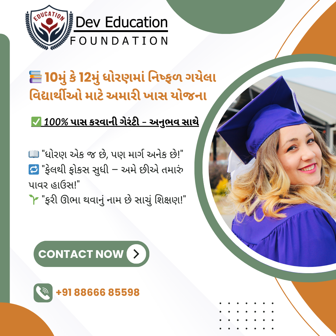 Dev Education Foundation in Rajkot, Gujarat offers a valuable opportunity for students who failed or dropped out of 10th grade to complete their schooling th..