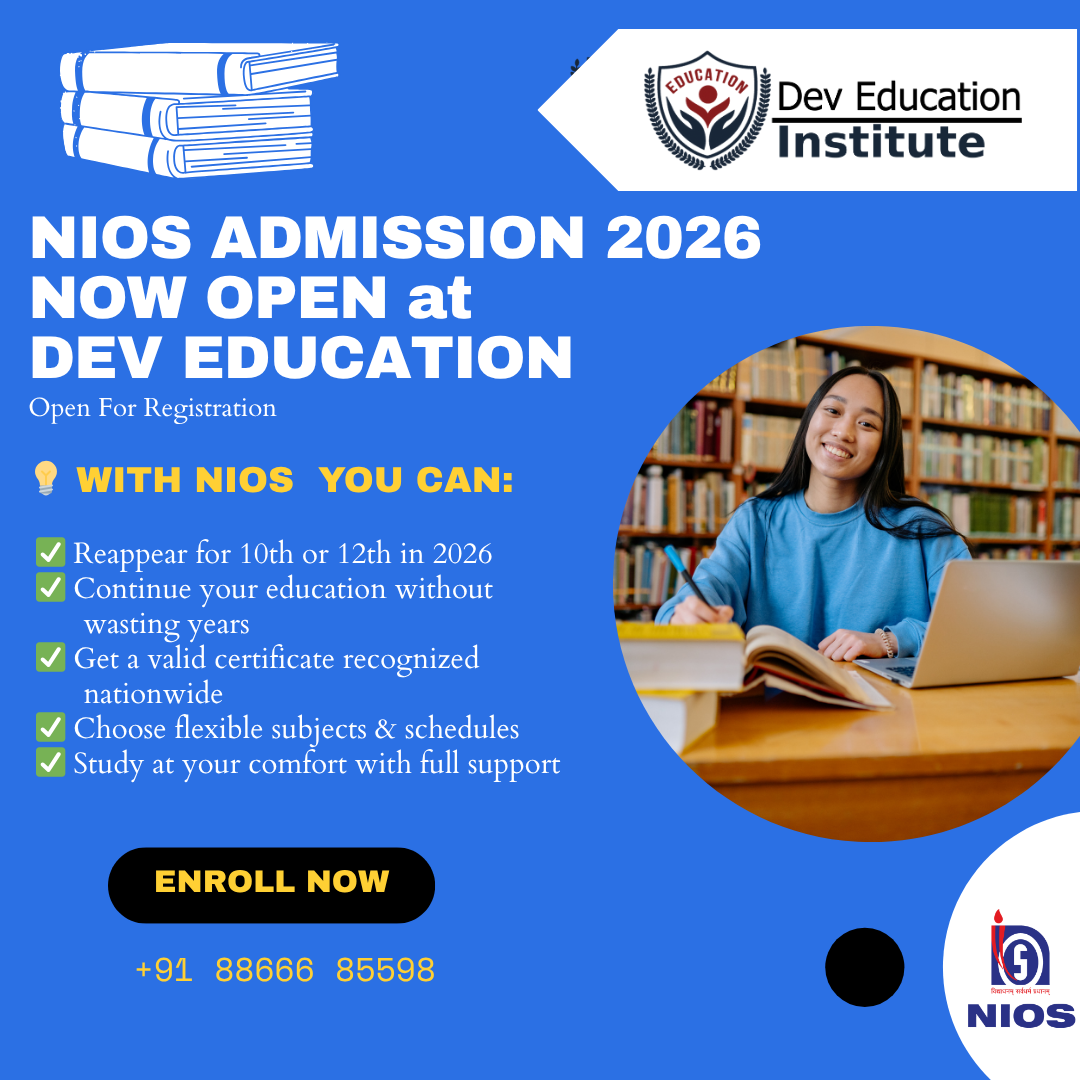 NIOS Open School Admission 2025–26 – Apply Now for 10th & 12th Class at Dev Education Institute
