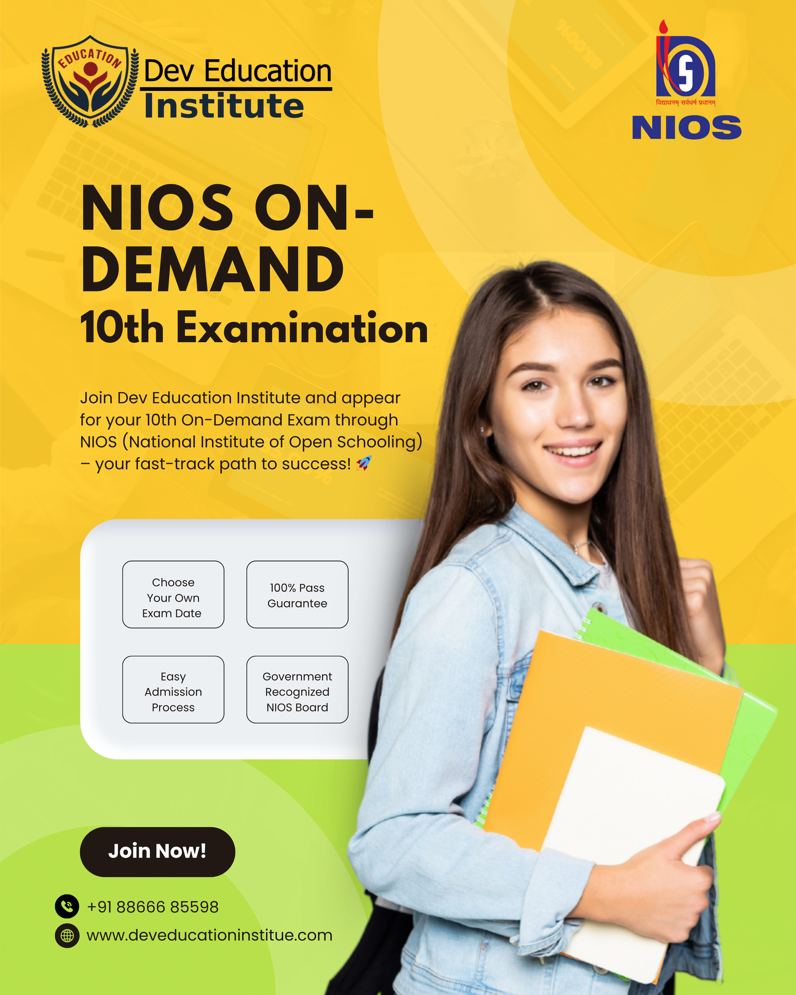 NIOS On-Demand 10th Exam Admission – Apply Online at Dev Education Institute